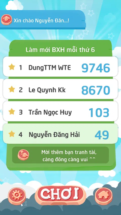 在 Zalo 上玩游戏并与朋友竞争。玩法: + 控制狗从低到高跳上楼梯。 + 狗狗飞得越高,你获得的积分就越多。途中可以帮助狗狗遇到的物品: +导弹:帮助快速飞行一段时间。 + 弹簧、弹跳垫:帮助跳得更高
