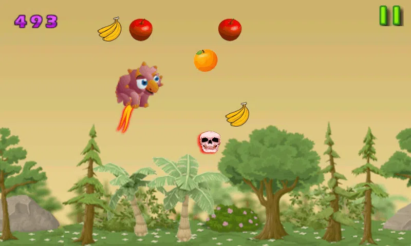 这是谁住在茂密的森林中的恐龙。他是个水果的爱人和喜欢吃不同大小的不同美味的水果。他是在森林抢到手在丛林中长大美味的水果。但是,这些水果都挂得很高的树木。这种恐龙需要你的帮助可达这些美味的水果。让他实现这些水果,你需要把恐龙在蹦床。使用这个蹦床,你可以让他跳得更高,更高。所以他能跳和跳这个蹦床,达到树果实的高度。放置蹦床,恐龙会跳就可以了,走得更高,然后掉下来。请确保您再次将蹦床,在正确的地方,所以恐龙可以再跳一次。如果你错过了把蹦床在正确的地方,恐龙会落在坑里。所以,要小心,不要伤害他。 而很少有危险也隐藏在水果之间。有一个致命的黑魔法头骨,如果恐龙碰撞,就会受到伤害。所以,要小心这种危险的黑魔法,并相应地引导恐龙。 有乐趣喂养恐龙,有很多水果。享受其中的乐趣