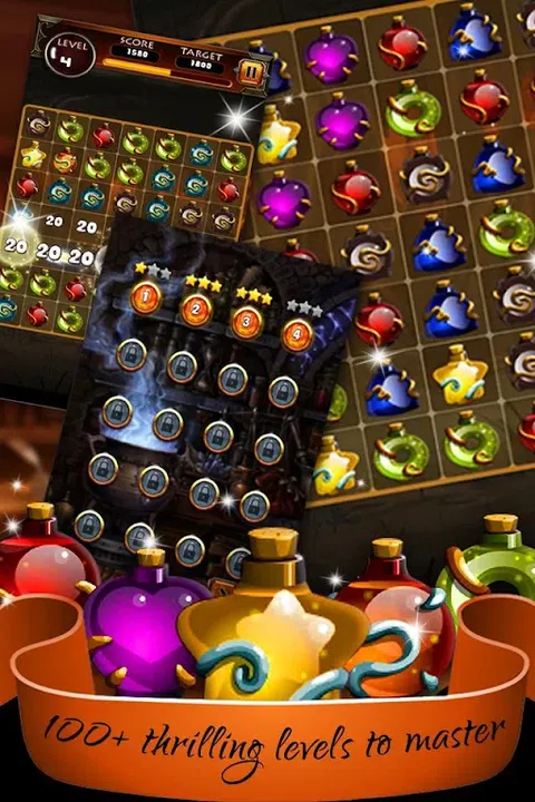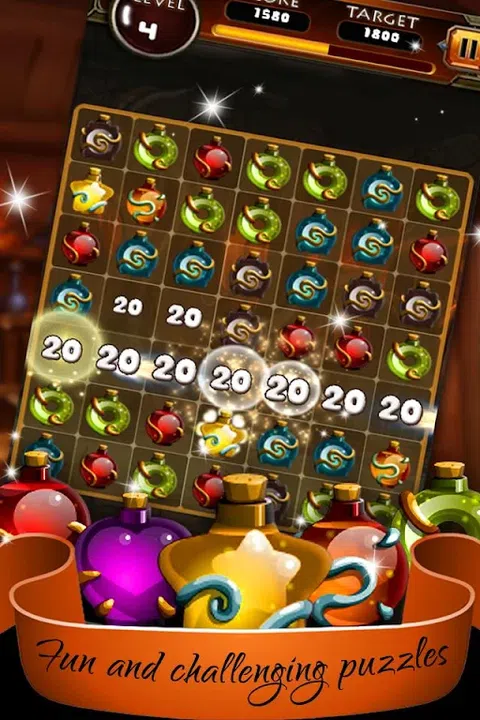 药水:在神奇的全新益智游戏中,匹配并弹出药水来拯救世界。享受三消益智冒险! 踏上神奇的旅程,穿越令人惊叹的世界。在你的旅程中神秘和神奇的药水! 匹配和药水以获得爆炸性的结果!解决有趣且具有挑战性的谜题,将 Link 3 游戏提升到新的水平。 混合药水并解决谜题,穿越充满魔法乐趣的土地! 您的任务要求您相同颜色和形状的药水。药水并在最神奇的游戏中获得高分! 药水特点: + 探索令人惊叹的魔药世界。 + 等待探索的美丽魔法王国 + 将三个闪闪发光的药水瓶和药水瓶连成一排,将它们弹出并粉碎! + 通过连续连接最多 5 个元素来收集最强大的药水! + 在您的手机或平板电脑上玩。 + 100 多个惊心动魄的关卡等你掌握 + 易于学习,但掌握起来却是一个艰巨的挑战。 + 征服 100 多个关卡。 + 混合搭配令人惊叹的迷人和危险的药水 你还在等什么?在这款最令人上瘾的游戏中,大量的魔法药剂正在等待着您。 所以停止等待并下载 Potion 并立即播放