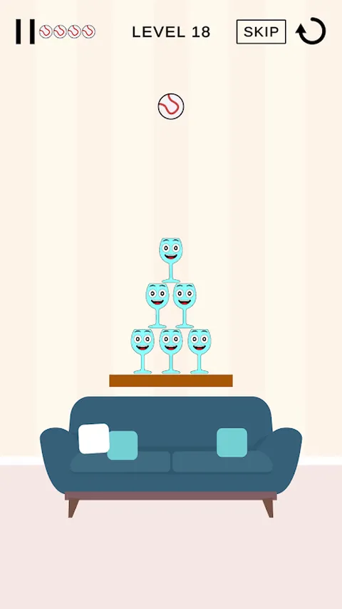 Break It 游戏挑战玩家有策略地落下球以打碎下面的一组玻璃杯。