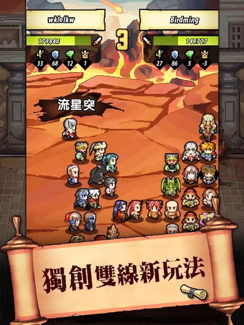 《小人物天团》为一款以众多知名人物,搞怪大乱入为题材的角色扮演型KUSO手游。同时取得角川授权,游戏中包含英雄策略对战、冒险闯关、地层挖宝、竞技会战等玩法,诸多独具创意且风格鲜明的游戏元素,最多可支援单一方就有25名英雄同时上场战斗,即使是玩家角色下线后,仍同样可以练功升级唷! (此次为菁英"删档"封测,储值金额将会于OB后加倍返还。 EX:菁英封测期间累积储值300红钻,测试结束删档后,OB开启时,使用原帐号将会返还600红钻) =特色= 【24Hr不间断,随时都是在练功】 冒险探索期间,不论角色是否在线上,都可持续获得探险奖励金钱和经验! 【广阔宝藏地域,探索未知神秘】 无限延伸的矿场区域,丰富多样的矿石资源,神秘宝藏、BOSS等着你! 【极限挑战乱斗,多种策略思维】 独创特殊战斗方式,支援同时多名英雄上场,站位、技能、组合策略无极限! 【知名佣兵参战,激发无限潜能】 众多熟悉老面孔,都将成为你背后强大的靠山,再多挑战都不无所畏惧