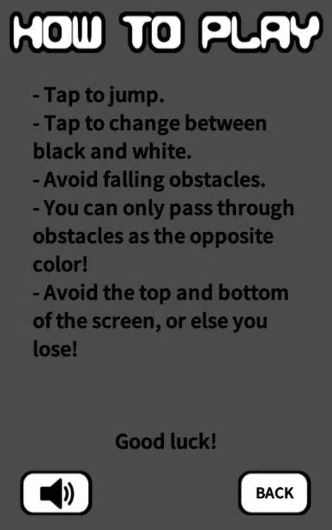 Oppo-Jump 是一款考验您技能的游戏! 跳过障碍物作为相反的颜色来得分! 玩多达五种不同的、具有挑战性的游戏模式! [怎么玩] • 点击跳跃。 • 点击以在黑色和白色之间切换。 • 躲避掉落的障碍物。你只能以相反的颜色穿过它们! • 避开屏幕的顶部和底部,否则你就输了! 祝你好运
