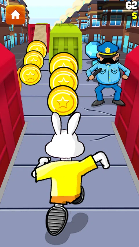 地铁兔子 - 火车冲刺跑步游戏和超级溜冰者的冒险世界, 兔子跑回来了!兔子热潮仍在继续 最佳游戏悬浮滑板的目标是为您的 Android 设备带来令人惊叹的复活节兔子冒险。享受我们为您制作的平台城堡很棒的关卡!在空中飞翔和跳跃,忍受困难时期,确保她的冲浪是值得的 - 收集金币!一定要避开冲浪障碍物和火车 注意力: 长按子弹按钮可以跳得更高更远。 特征: * 经典平台游戏风格。 * 可爱的角色和许多不同的敌人等待击败。 * 精心设计的图形和酷炫的音效。 * 许多世界和关卡可供探索。 * 沿途收集硬币和其他贵重物品以增加你的分数。 * 易于控制。 40+不同的敌人 - 2 个不同的角色怪物 - 角色可升级 - 成就 - 还有更多功能! 让我们帮助杰克兔子和朋友们在地铁站冲浪吧 冲刺、跑步、冲刺,随心所欲 但要注意:还有很多问题等待着他的女孩奔跑和角色跳跃。 探索不同的世界,收集金钱和星落,然后点击跳过障碍! 下载 Android 版《守护者亚军:冲刺》游戏!并挑战你的朋友,以最快的速度在铁轨上击败你的跑者,同时获得高分