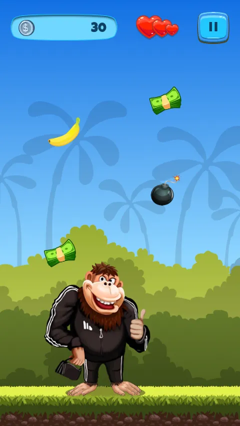 走进丛林,控制一只淘气的猴子,躲避炸弹,同时收集金币和香蕉以获得能量提升。目标是尽可能长时间地生存,同时收集尽可能多的硬币。香蕉提供临时盾牌,帮助你躲避危险的障碍。测试你的反应能力,看看你能走多远。