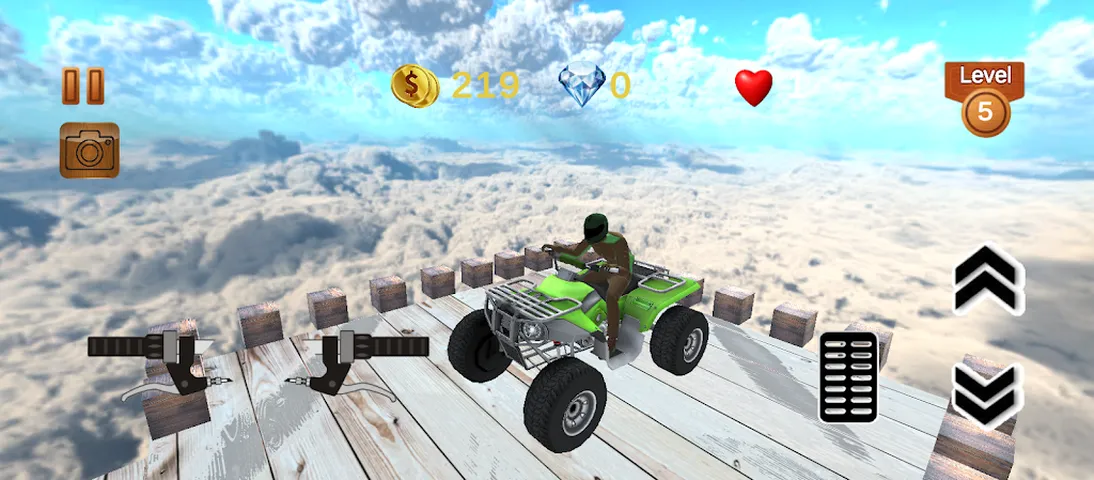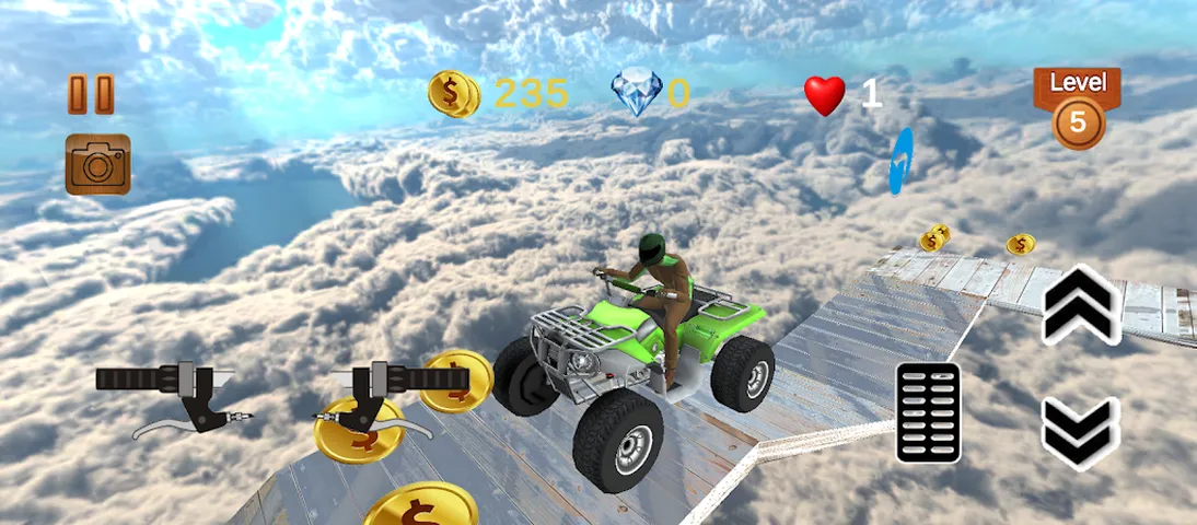 Track Master Quads Adventures 是一款动作丰富的 3D ATV 四轮摩托游戏,将惊险刺激的冒险带到您的指尖!体验在动态天空赛道上骑行的兴奋感,通过旨在突破极限的激烈挑战来测试您的技能。凭借一系列定制 ATV 4 轮车变体,每次骑行都是独一无二的,并根据您的风格量身定制。 无论您是挑战大胆的特技还是穿越风景优美的路线,这款游戏都为所有类型的玩家提供无尽的乐趣和冒险。此外,身临其境的昼夜循环会根据设备的系统时间进行调整,为美丽的变化天空增添一层真实感。 主要特点: * 亚视四轮摩托车爱好者可以享受对具有挑战性的赛道的流畅控制 * 具有高品质图形的令人惊叹的 3D 环境 * 激动人心的天空轨道挑战,测试您的精确度和敏捷性 * 多种具有独特风格和升级的四轮摩托 * 基于实时系统时钟的动态日夜模式 * 引人入胜的游戏玩法,让您流连忘返