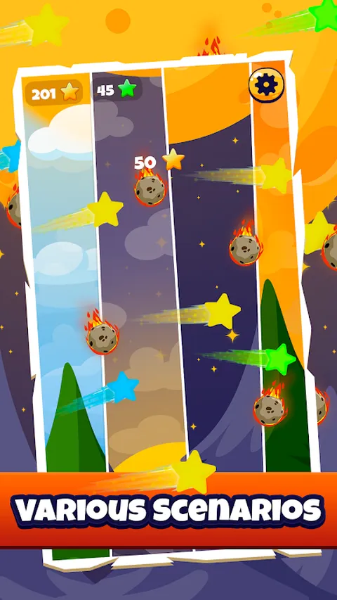在明星挑战游戏中,您的主要目标是在您最喜欢的游戏模式排名中达到最高位置! 目前有 3 种游戏模式:普通模式、困难模式和时间模式。 正常模式:您负责收集尽可能多的流星,而无需点击任何流星。请继续关注,因为时不时会出现特殊的星星,以更快地提高您的分数。这是一款非常考验反应能力的休闲游戏! 困难模式:收集所有黄色星星。如果任何东西越过了你手机的右角,你就输了。尝试收集尽可能多的物品,以达到排名的最高位置。此外,在这个具有挑战性的模式中,收集的每一颗星星的收入都更大! 时间模式:收集尽可能多的星星以提升排名,但您正在与时间赛跑。你唯一的希望是收集当你即将输掉时出现的额外时间。此模式非常适合喜欢快速而激烈挑战的玩家。 即使没有互联网,您也可以在离线模式下玩!随时随地享受明星挑战。 此外,利用定期出现的临时道具来改善您的游戏玩法。观看快速赠品,在比赛期间获得特殊福利! 当你失败时,你的记录将转换为可用于购买升级的星点。这些升级可帮助您在排名中达到新的水平,并进一步提高您的成绩。 在这款引人入胜的休闲游戏中挑战您的朋友,提高您的反应能力并攀登全球排名!明星挑战是随时随地玩的理想选择,无论是离线还是在线,都提供无尽的乐趣。 立即下载,看看您是否有能力成为星星大师!