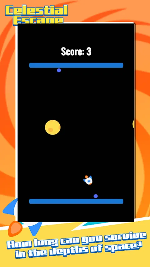 ? 在 Celestial Escape 中踏上穿越宇宙的令人振奋的旅程!通过点击屏幕来改变方向并避开即将到来的小行星来导航您的宇宙飞船。在这个快节奏的冒险中,躲避障碍物的同时,收集蓝色的补给球来提高你的分数。 ? 你能在太空深处生存多久? ? 测试您的反应能力,力争获得最高分!
