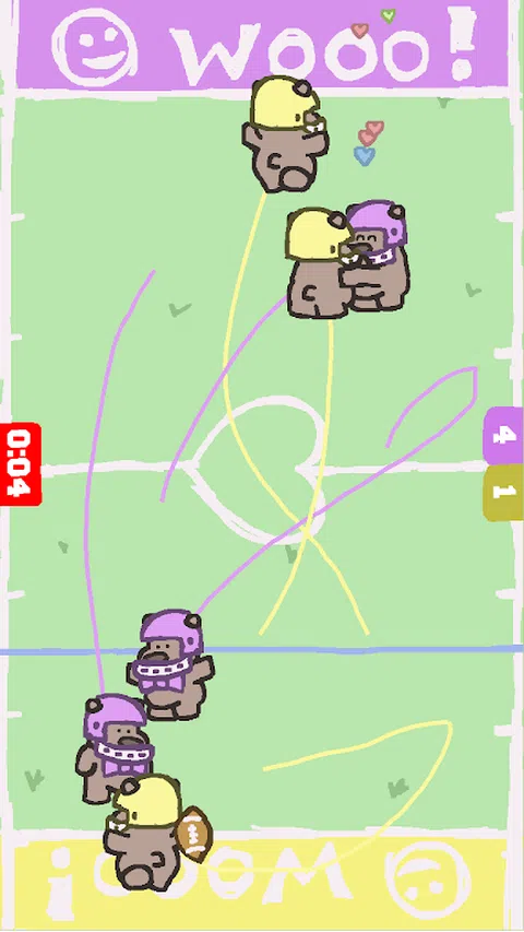 *此游戏仅供 2 位玩家使用,在单个设备上玩!* Hugby 是踢足球的泰迪熊。 玩家轮流为他们的泰迪熊定位,然后追踪他们奔跑的路线,然后观看比赛的展开。 目标是让你的一只熊捡起球并将其跑到场地的另一端。每当两只熊接触时,它们就会拥抱。如果抱球的熊被抱起来,球就会交给另一队