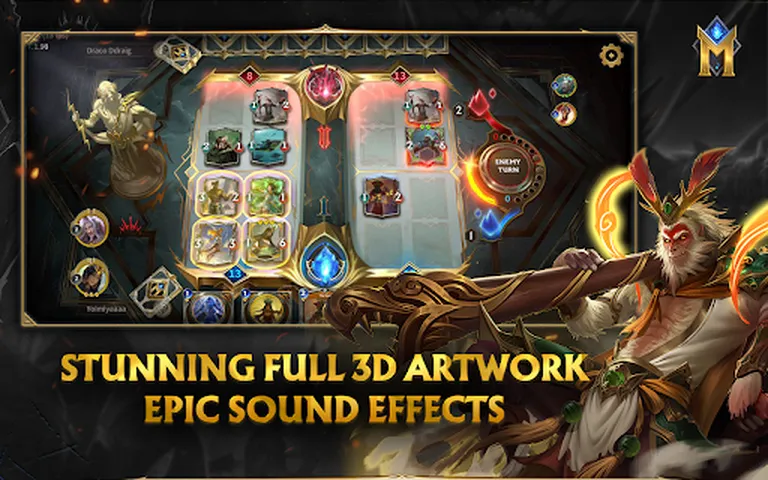 Mytheria:终极卡牌战斗体验 在《Mytheria》中踏入战略与神话相遇的世界,这是一款革命性的卡牌对战游戏,挑战您在史诗般的 4x4 棋盘上智取对手。解锁强大的动画卡牌,构建一套将对手变成石头的牌组。每场比赛都是对技巧、适应能力和头脑游戏的考验,让你在激动人心的 PvP 战斗中一决高下。 主要特点: 史诗卡牌战斗:参与快节奏的战略决斗,具有惊人的视觉效果和身临其境的机制。 动态游戏玩法:没有一场比赛是一模一样的,需要您随着游戏的发展而调整策略。 收集和升级:组装不同的牌组,每张牌都有自己的力量,在壁炉中创造出无与伦比的组合。 战略深度:提前思考,计划你的行动,并用改变游戏规则的卷轴扭转战局。 美丽的艺术作品:体验华丽的动画卡牌,当你将它们召唤到战场时,它们就会变得栩栩如生。 全球 PvP:在激烈的 PvP 比赛中挑战世界各地的玩家,提升排名,成为传奇战术家。 《Mytheria》熟悉而又创新的游戏机制会让奇幻卡牌游戏的粉丝感到宾至如归。无论您是经验丰富的战略家还是新手,Mytheria 都能提供技巧、创造力和运气的迷人组合。《Mytheria》非常适合喜欢高风险的快速、激烈比赛的玩家,在这款游戏中,您的大脑是您的最佳武器。 如果您惊叹于超级英雄、传奇或每一步都很重要的战术游戏的快感,《Mytheria》将在您弹指间融合神话和策略,让您着迷。 立即下载,踏上成为 Mytheria 终极战略家的旅程!