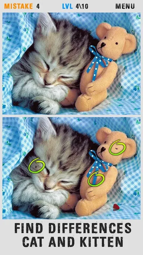 找不同猫和小猫 找不同猫和小猫 - 一个游戏应用笑话模拟器居屋!这个版本欣赏本次搜索中的所有搜索项,你会看到最漂亮最可爱的海豹!找出每张图片中的 5 个不同点,通过所有关卡!证明你最用心的人!给你10次尝试,小心犯错,按三思! 将呼吁与寻找速度的朋友或家人一起玩 Spot 差异!显示你的朋友! 现在免费开始寻找可爱猫咪的差异,在地铁、学校甚至工作的任何地方都可以在没有互联网连接的情况下玩耍!专为恶作剧而设计的注意笑话游戏,对您的健康绝对安全! 感谢您玩我们的游戏!给我们反馈,我们会努力让我们的游戏变得更好