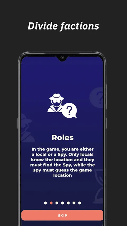 “欢迎来到 Spy Hunt,这款激动人心的派对游戏,在这里信任是一种你买不起的奢侈品!召集你的朋友,让自己沉浸在一个秘密身份、欺骗和狡猾的世界中。在每一轮中,一个玩家被随机分配为间谍的角色,而其余的则是调查员。间谍必须融入并避免被发现,而调查员一起工作以揭开间谍的身份。使用你的机智、直觉和提问技巧,让每个人都根除间谍,并在他们收集到足够的信息之前收集足够的信息,以赢得夜晚。间谍派对或社交游戏非常适合在他们收集足够的信息之前获胜。非常适合间谍。