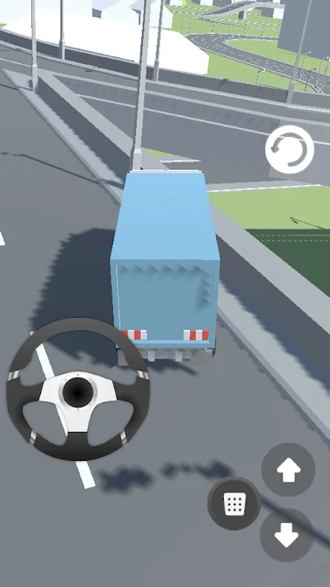 操作方向盘并使用踏板驾驶卡车。使用刹车停止。