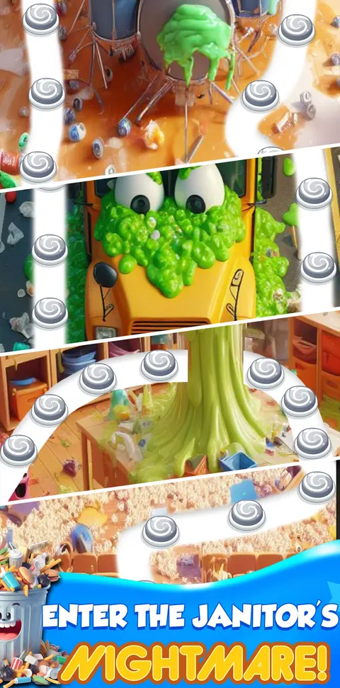 匹配游戏,另一个匹配游戏!相信我们,这是一款让您爱不释手的匹配游戏!学校被肮脏的烂摊子摧毁了—粘液、堵塞的厕所、臭鸡蛋。看门人现在开始收拾残局并将其全部清理干净! 100 个关卡,让您既娱乐又充满挑战。你能解锁所有新的混乱吗?