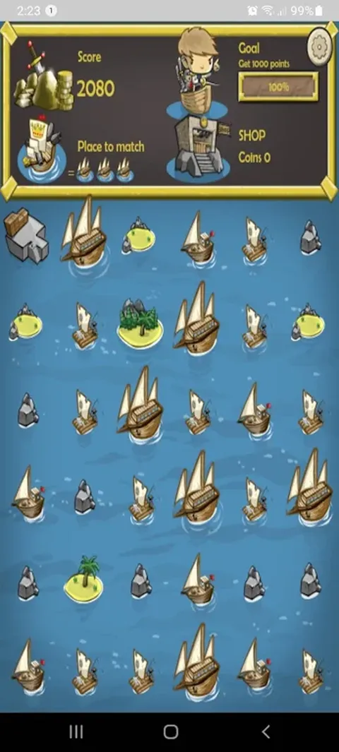 这是一个有船只和怪物的策略游戏。您必须将水平或垂直放置以形成更大的船,从而消灭怪物。