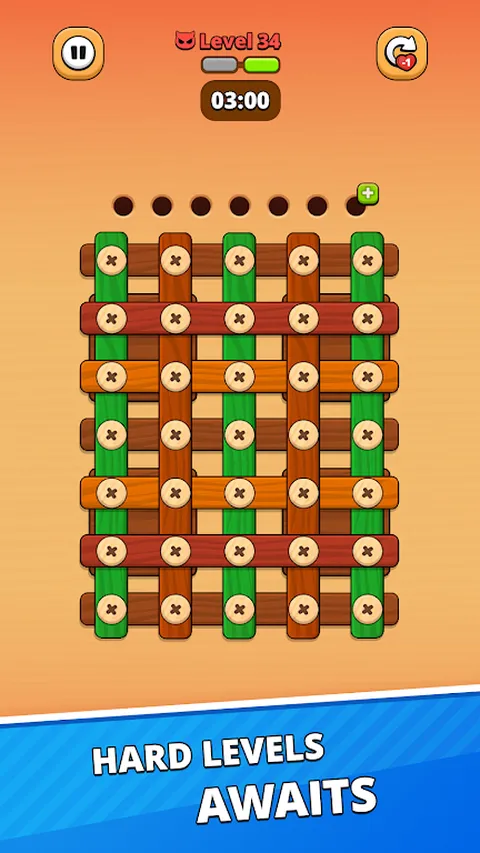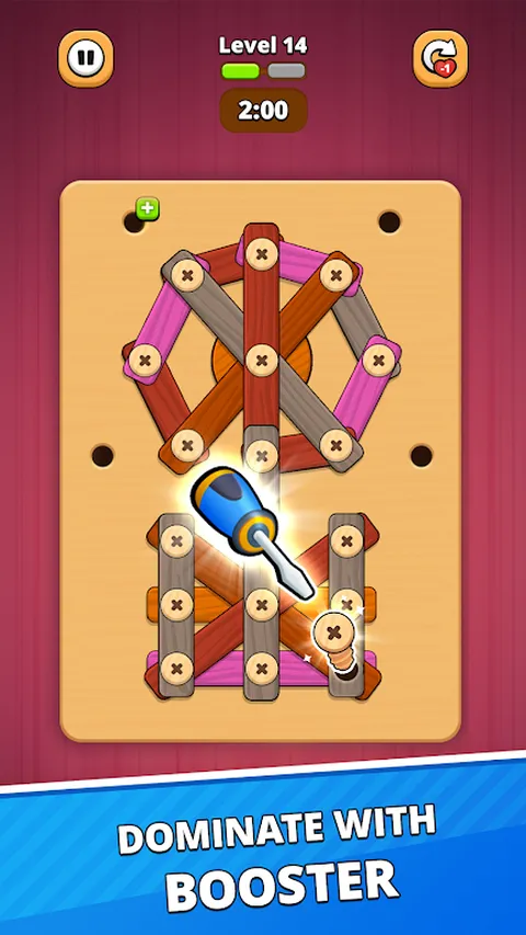 与“木螺钉 - 螺栓大师”一起沉浸在逻辑和策略的世界中!? 这款独特的木制益智游戏将挑战您的问题解决能力,同时提供轻松愉快的体验。 ?游戏特色: - 从简单到复杂的关卡:拧开螺丝,释放木板,解决难题。 - 使用助推器来克服棘手的情况: - “时间冻结”让你有更多时间思考。 - “撤消移动”可让您纠正错误。 - “移除面板”开辟了新的胜利之路。 - 易于掌握的直观控件。 玩法: 选择螺丝,并按照正确的顺序拧开。 使用助推器来加速或简化您的进度。 享受完成每个阶段的满足感! ? 成为终极螺丝大师!玩这个游戏将有助于提高您的逻辑、对细节的关注和战略思维。准备好迎接挑战了吗?下载“木螺钉 - 螺栓大师”,立即开始您的旅程!