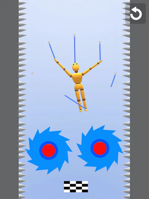 在绳子上滑动手指以切断它。切断绳子,引导布娃娃到达目标,不要撞到任何障碍物。