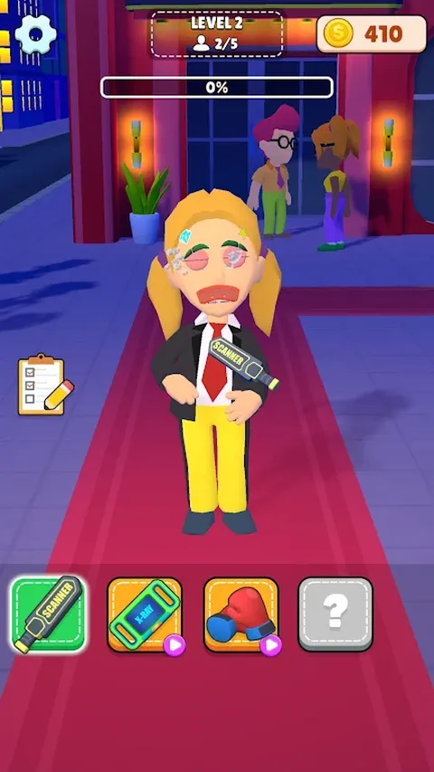 扮演保安员的角色!您的工作是通过允许或拒绝客人来控制谁进入活动。进入后,帮助他们调整外观,以满足派对的要求。您可以通过以下方式帮助您的客人: 扫描仪扫描的对象无效。 治疗脸上恼人的粉刺。 治疗顾客错位的牙齿。 肥皂和冲洗。为客人除臭。 移除纹身,因为这个派对不允许任何有纹身的人进入派对。 但要小心,麻烦制造者正试图潜入。阻止他们,否则派对将被毁! 特点: 扮演一名具有独特风格的保安,通过改变客人的外表来帮助他们融入。 根据客人的外貌和行为拒绝或接受客人,挑战自己。 阻止麻烦制造者潜入并造成混乱。 有趣而快节奏的游戏,具有不同的难度级别。