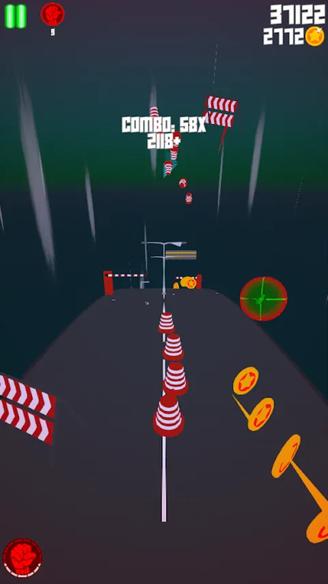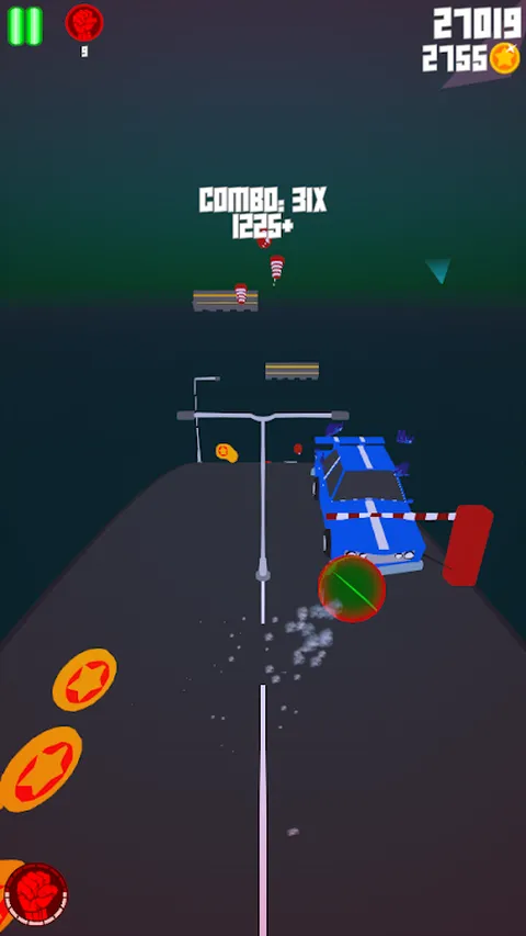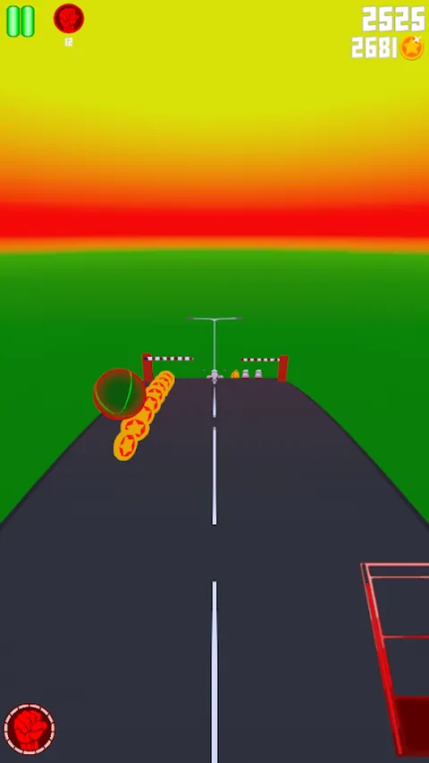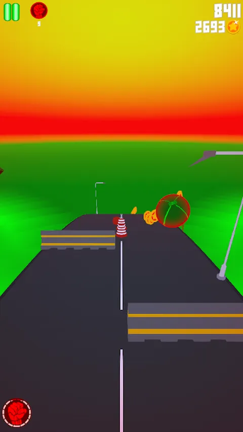 你在路上滚下来,尽量避开障碍物。