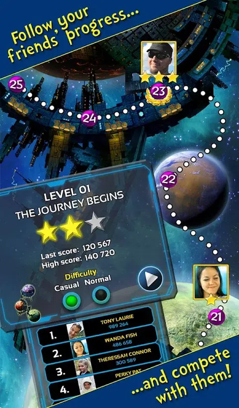 太阳系正在准备一场盛大的庆祝活动,这是一场特殊的活动,一艘巨大的宇宙飞船出现,意图不明。你是探索者飞船的驾驶员,你必须揭开这艘大星舰的秘密和意图。当然,你必须拯救太阳! 强调 - 休闲、创新的动作—带有拖放控制的太空游戏! - 美丽的星系,细致、可爱的卡通图形! - 各种陷阱 - 从太空碎片到星舰武器! - 分享您的成功 - Star Pilot - Save the Sun 已与 Facebook 集成!挑战你的朋友并与他们分享你的成就! - 包含受游戏启发的原创科幻短篇故事,并随着您在冒险中的进展而解锁。短篇小说由 Gyorgy Dragon 撰写。 随意的银河飞船控制 控件非常容易学习 - 只需用手指抓住您的宇宙飞船来驾驶它并四处移动以避开障碍物。 一个奇妙的世界 无论您是飞过巨大宇宙飞船的机械部件,还是飞过地球表面,一切都是美丽而危险的。银河系和这个太阳系永远不会停止让你惊叹!探索各种场景和挑战需要数小时! 很多很多的解锁 收集硬币并在商店中花费它们来解锁许多新皮肤和升级!您想玩升级版的探索者飞船吗?绿色 Mk II?还是橙色 Mk III?做我们的客人!拯救银河