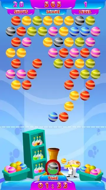 按颜色配对泡泡,不要让它们挂得太低,否则游戏就会结束。虚线表示气泡何时悬挂得太低。越过这条线,游戏就结束了。