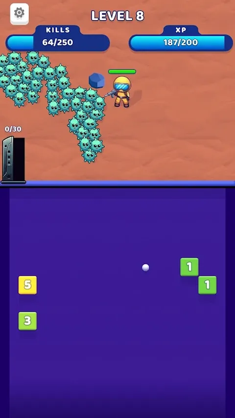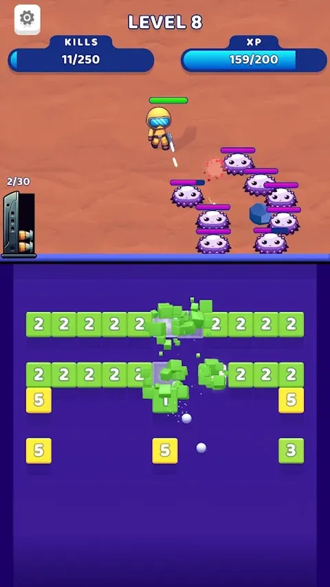 击破数以百计的怪物,探索外太空的深处和危险! 要射击,请使用碎砖机! 破砖机中的每一点都是 1 个弹药,用于您的太空探索。 你能走多远?准备好进行精彩的冒险!