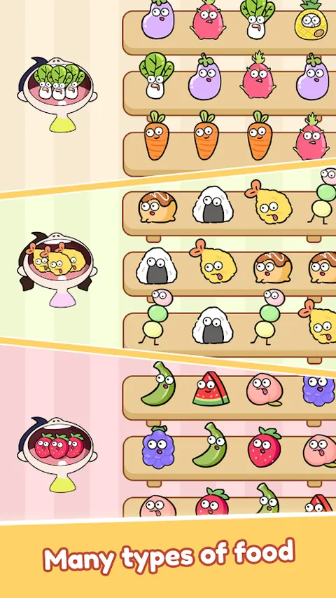 召集所有排序游戏爱好者!您渴望井井有条的空间带来的满足感吗?Foods Sort - Match Triple Food 就是你的最佳选择,这款终极休闲游戏将分类的乐趣与三重匹配的挑战融为一体。 在这个令人愉快的世界中放松并征服!挑选美味的小吃、清凉的饮料和五颜六色的水果。在广阔的货架上匹配三个相同的物品,将它们全部清除,并解锁新产品以定制您的体验。 简单易学,精通具有挑战性。不要低估食物分类的深度。每个级别都需要专注、策略和快速思维来解决越来越复杂的难题。 用巧妙的道具提升你的游戏体验!使用有用的工具和特殊物品克服棘手的关卡。发展自己独特的分类风格,成为真正的三消大师。 随时随地放松玩耍。食物分类是一款离线游戏,因此您可以毫无压力地享受整理和匹配的满足感。放松身心,减压,体验纯粹的解谜乐趣。 总有新的发现!季节性活动和频繁更新使《食物分类》保持新鲜感和刺激性。不仅仅是产品匹配,总有惊喜在等着您。 准备好将您的分类技能转化为三消大师了吗?立即下载食物分类!