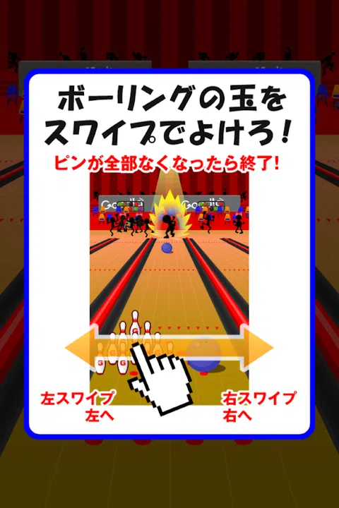 躲开保龄球! ■ 玩法 左右滑动别针以避免保龄球。 ■ 规则 如果 10 个球瓶掉下来,游戏就结束了。 躲避各种球,例如弧线球和快球。 通过向左或向右滑动来清除任何保龄球。 当大旗掉到十位时,游戏就结束了。 我躲避各种领域,例如快速球和破坏球