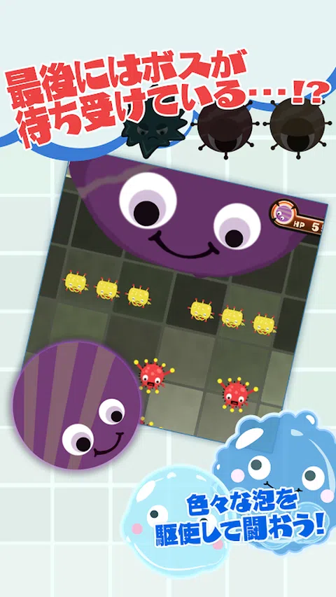 ○ Pukuru 解释 数十种细菌接近. 合并气泡,形成强大的巨型气泡! 尺寸越大,杀菌力和有效范围越大。 噗噗噗噗噗噗噗! 具有穿透泡泡、爆炸泡泡的力量,以及各种强大的泡泡力量 消灭接近的细菌群! 但要小心…这并不容易, 超强的boss菌可能会来…! ? 【什么是作莲计划】 “卡普空的新人 一个尝试做游戏应用的项目 我们将在未来发布更多游戏。 搜索“Tsukuren”并与它一起玩! 另外,搜索“CAPCOM”并享受其他标题! 【操作环境】 它将是具有 Android OS ver.4.0 或更高版本的 Android 设备。 *不包括一些终端。 *不保证平板设备的操作。 * 不支持因设备无法保证正常工作而导致的故障。 [同意服务条款] 下载本游戏即表示您同意本游戏的使用条款。 下载前请阅读使用条款