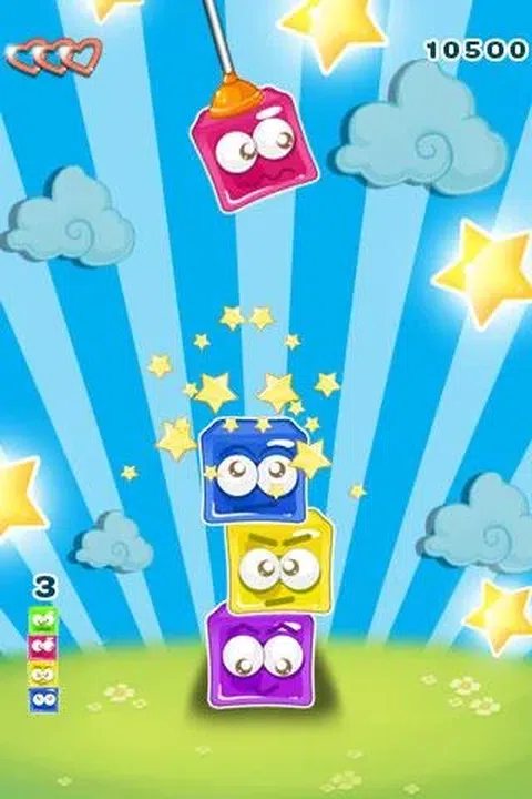 当果冻块左右移动时,点击即可掉落它们。你扔下的方块越准确,你得到的分数就越高。如果您错过了 3 块,游戏就结束了。祝果冻好运
