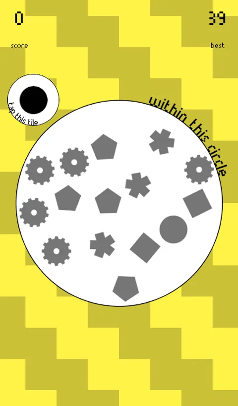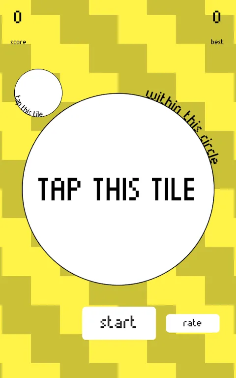 在瓷砖变白之前点击它。只需点击小圆圈中显示的图块即可。我的意思是:点击大圆圈内的图块。好的。这个游戏真的是不言自明的,你会很快学会它。打破高分,保持专注。点击这个图块!