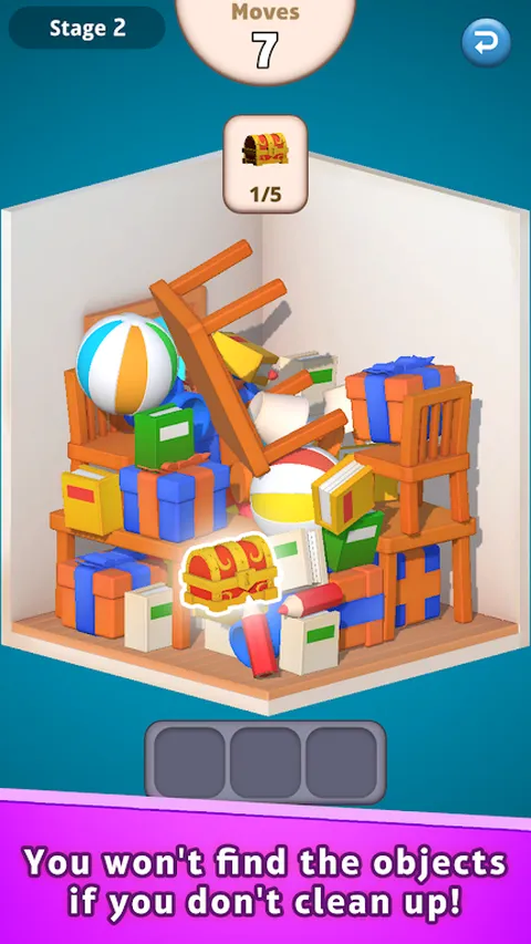 在凌乱的房间中找到隐藏的物体! 一款考验您战术技巧的策略性隐藏物品游戏就在这里! 您是否厌倦了简单的隐藏对象游戏,您只能找到东西? 在这里的某个地方!隐藏对象不仅仅是寻找隐藏对象的游戏。 这是一款具有挑战性的游戏,您在清理凌乱的房间的同时找到隐藏的对象。 你需要对从哪里开始清理物体有策略! - 清理凌乱的房间并找到隐藏的物品! 在杂乱的房间里很难找到隐藏的物体! 将混乱转化为秩序,并找到那些隐藏在视线中的物体! 要清理,您需要匹配三个相同的对象! 你认为你可以清理这个房间并发现隐藏的物体吗? ◆ 注意您使用的移动次数 你有一定的移动次数,可以用来清理房间里散落的物体! 随意乱扔东西是没有帮助的!战略性的清理是发现隐藏物品并清除关卡的关键! 清洁是一门艺术!一定要仔细选择你的起点! ◆ 一次错误的移动,房间会再次陷入混乱! 匹配 3 个相同的物体来清理房间! 如果不明智地匹配,物品将把混乱倾泻到您完美组织的空间中! 快思考!在你的回合用完之前检测到那些鬼鬼祟祟的物体! 在隐藏对象游戏中释放你的战术技能,与众不同!