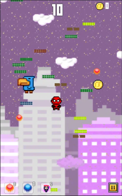 有史以来最热门的手机游戏之一 - 现在免费,并最终由创建原始版本的同一团队针对 Android 进行了适当优化! 亲眼看看为什么每个人都称《Spider Pixel Craft Jump》为“可能是有史以来最好的[移动]游戏”,它是一款完美的游戏,非常令人上瘾,而且可重玩性极佳 你能跳多高? 城市之旅,不断地从一个平台跳到下一个平台,沿途收集力量,躲避怪物和外星人。当您超越其他玩家在页边空白处写下的实际得分标记时,您会开心地大笑。请注意:这款游戏非常容易上瘾! 特征: - 许多奇幻的世界可供玩耍 - 夜晚的城市万圣节、天空、自然、森林。 - 令人敬畏的能量提升(蓝色能量、橙色能量、盾牌。) - 需要避开的迷幻障碍(不明飞行物和许多许多可怕的怪物) - 全球排行榜,有趣的成就!打败你朋友的分数! - 更多角色:Spider Special、Smile Sam、Jack Flash、Agnesa、Edithy。 *怎么玩*: 倾斜以向左或向右移动 * 警告:这款游戏非常容易上瘾! * 不要玩蜘蛛像素工艺跳跃和驾驶