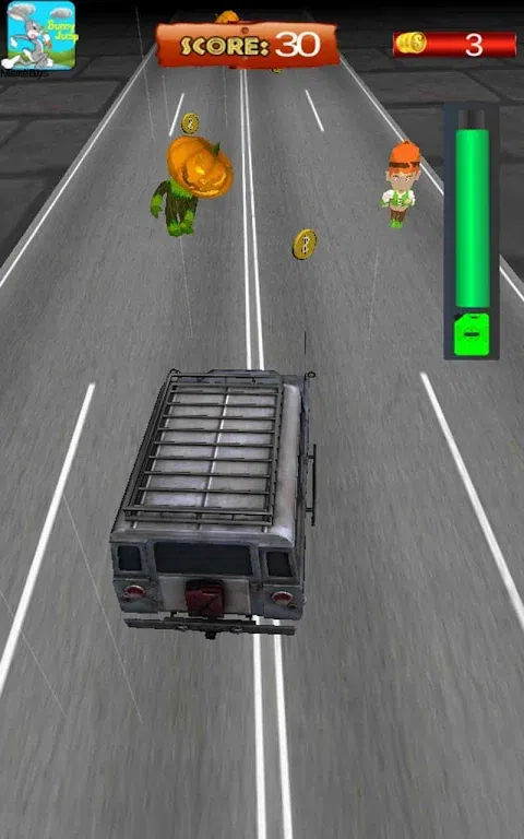 会发生什么,如果你在开车的月光您的吉普车在万圣节之夜,可怕的夜晚像血红色的月亮,你没有好友?独自驾驶在这样一个可怕的夜晚的确是一个困难的工作。 万圣节庆祝的家人,朋友,甚至是同事之间的许多不同的方式和你去庆祝万圣节之夜与你的朋友,但在路上,你遇到了一些疯狂的南瓜怪物追人,现在你必须粉碎他们,他们伤害之前人类。这是你疯狂的驾驶技能的真正考验。与你的疯狂驱动器粉碎他们,他们杀了人前。 粉碎万圣节鬼在万圣节之夜。驾驶吉普车在一个僵尸高速公路,月光是如此的困难和可怕。这是一个可怕的万圣节晚上你在驾驶时这可怕的一夜您的吉普车所以才保存这些万圣节南瓜鬼人类的可怕道路。有一些疯狂的敌人在僵尸在万圣节之夜可怕的道路,你应该粉碎他们与你疯狂的驾驶技术会损害人类之前。随着每砸南瓜僵尸你会得到更多的分数。 这是一个南瓜砸路上杀3D游戏