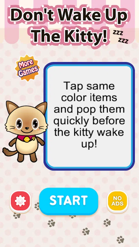 小猫正在睡觉,不要叫醒小猫。 点击或触摸相同颜色的物品和弹出块以快速粉碎它们并在屏幕填满之前冲过去! 当屏幕填满时,闹钟开始,小猫会醒来。当心! 通过令人上瘾的炫酷动作益智游戏挑战您自己和您的朋友。 适合儿童和所有年龄段。在手机和平板电脑上享受它。 玩得开心