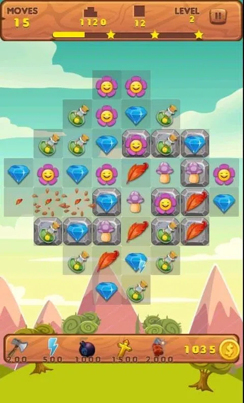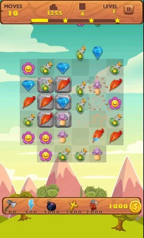 只需制作三张或更多相同的照片即可清除它们 - 砖块也会很清晰。 完成顶部显示的目标以在你用完动作之前通过关卡。 底部的道具可以帮助你快速赢得比赛。 让我们开始你自己的珠宝探索