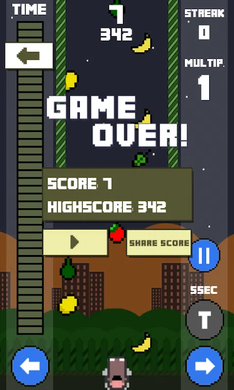 通过吃掉所有的水果来战胜饥饿—或者我们应该说 HANGER! Hangry Hippo 涵盖四种独特的游戏模式,包括广受欢迎的射击模式。 吹嘘你的分数并在 facebook 上分享乐趣! 拱廊: 尽可能多地吃,但要小心落叶! 时间挑战: 我吃太多了: 你真的吃得太多,你觉得恶心。现在是时候把你吃过的所有水果都吐出来并拍摄落叶了。 我讨厌香蕉: 出于某种无法解释的原因,你突然讨厌香蕉。天知道为什么。你的挑战是避免所有大量掉落的香蕉