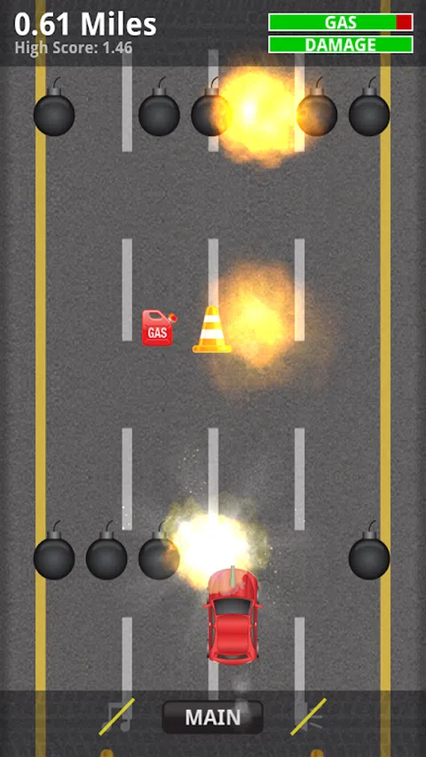 超级有趣和具有挑战性的驾驶和射击游戏。通过向左或向右倾斜设备来驾驶汽车,以移动汽车并触摸屏幕进行射击。收集气体容器以重新装满油箱。储气罐越大,补充的就越多。当您撞到汽车或路锥时,您会受到损坏,但是如果您获得扳手增强功能,则可以修复一些损坏。你的伤害越大,你的可移动性就越小。避开或射击汽车和炸弹