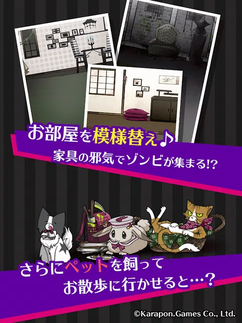 让谈话带起了僵尸。 还可以重新装修房间! 此外,还有带宠物去散步的小游戏!