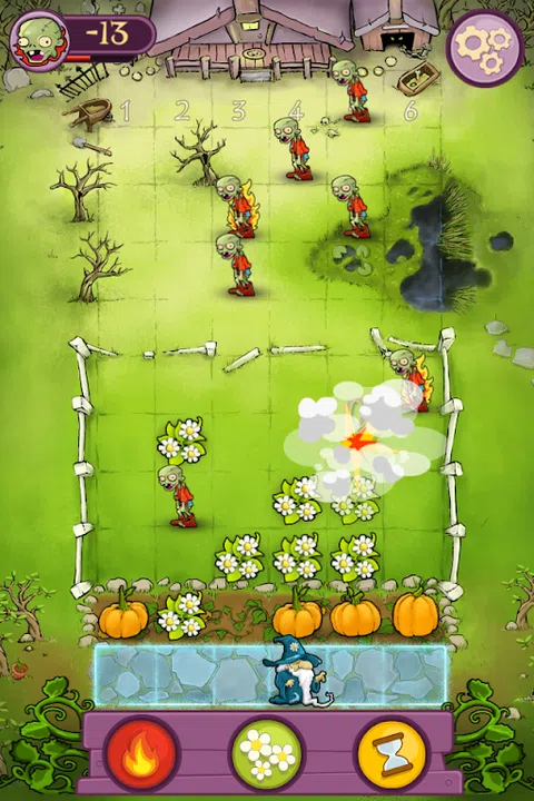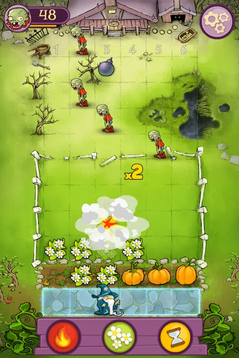 园艺和巫术游戏。 Japer and Zot 是一款单人游戏,讲述了两个相互争斗的老巫师。白魔法师 Jasper 是非常有名的园丁,他的南瓜总是在当地的集市上赢得蓝丝带。他的长期对手和邻居,不擅长种植生物的死灵法师佐特召集了一支不死族军队来粉碎贾斯珀的所有获奖南瓜。帮助 Jasper 保护他的南瓜,将 Zot 蹒跚的爪牙变成精致的白花,然后将它们烧成灰烬! Jasper and Zot 的游戏玩法大量借鉴了经典街机游戏。玩家在花园小径上水平移动贾斯珀,同时施法将接近的僵尸变成花朵,或者用魔法火焰点燃这些花朵和附近的僵尸。你用一个咒语摧毁的越多,你获得的积分就越多。如果你能在两波 Zot 的亡灵大军中幸存下来,你就赢得了比赛并根据你的表现获得分数