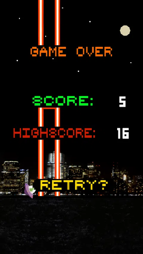 Spaceship Joyride 是一款基于技能的游戏,要求您正确把握点击时间。 点击屏幕让飞船穿过每一列管道之间的缝隙,每成功通过一列管道,你的分数就会加1。 您走得越远,得分就越高! 如果您喜欢这款游戏,请给它评分! 故事:出于某种原因,西蒙(驾驶这艘船的外星人)非常喜欢飞过障碍物,障碍物很多,而且速度非常快。虽然今天是西蒙的休息日(巧合的是你每天都玩游戏),所以你将控制西蒙的宇宙飞船! 特点: - 简单的控制(点击屏幕)。 - 复古图形。 - 很有意思。 - 快节奏。 - 熟悉的游戏风格。 拍拍拍通过检查站! 游戏控制:。 - 点击屏幕来增加你的船的高度。就这样