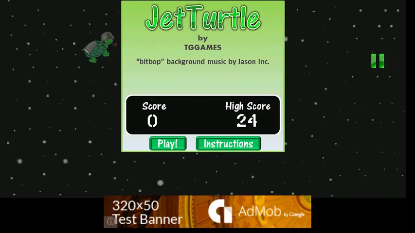 在这款由 PopCap 制造商 TGGames 为您带来的年度全新动作游戏中,扮演 JetTurtle 大放异彩! 作为喷气龟驾驶,使用喷气背包尽可能多地躲避小行星,同时避免碰撞。当您成功通过每颗小行星时,您的分数将增加 1 分。 按住滚动空间背景以向上推动自己。释放以向下射击自己。 如果您飞出屏幕,您将进入“辐射区”。您需要在生命值耗尽之前重新进入屏幕,否则游戏将结束。 您可以使用游戏右上角的绿色暂停/恢复按钮随时暂停或恢复游戏。 你在等什么?立即下载 JetTurtle 并击败您朋友的高分! JetTurtle 由 AndEngine 提供支持,这是一个非常好的开源游戏引擎,最初由 Nicolas Gramlich 开发