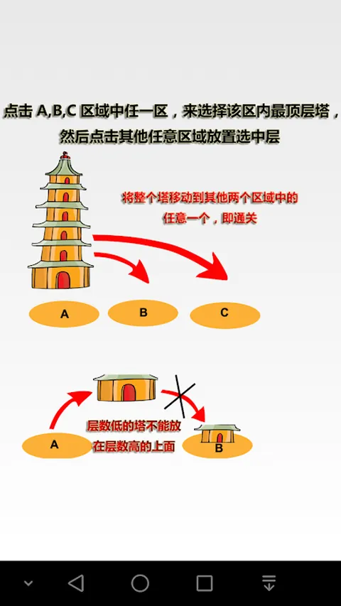 整个游戏共有5关,全部通关后有惊喜哦^! 通关说明:雷锋塔每一层都是可拆卸的,只要将雷峰塔一层一层的移动到另一个区间即可通关,没通过一关塔将会增加一层; 游戏背景:以拯救白素贞为背景; 本游戏志在阐述,雷锋塔精神(又称塔精神),努力改变大家对“法海不懂爱”的误解…