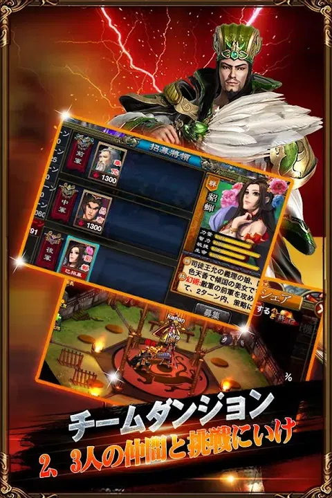 即使是初学者也可以享受它,一起击败敌人很有趣! 一场可以参加50人的大乱斗!一个有两三个亲密盟友参与的团队地下城。 与来自全国各地的玩家对战! 获得三国大将,成为他们的真子,带上三国大将,征服世界。 ◆◇ 直观的滑动操作◆◇ 点击敌人直接攻击。召唤你最喜欢的军阀到战场! 故事与这些朋友联系在一起的成熟三国 RPG 体验! ◆◇ 军团战争◆◇ 你可以组成一个25人的军团。 一个军团有一个军团指挥官,一个战略家等。 军团可以通过升级来扩大军团的能力。 让我们联合起来,瞄准战斗中最好的军队! ◆◇丹队◆◇ 两三个人可以一起探索团队副本, lv40, lv60, lv80, lv95 我会准备不同的风景! 掉落的卡扎里实力也大为提升! ◆◇ 搭载桔梗、游乐园、赛马场系统! ◆◇ 装备一只超萌的宠物会提升你的整体战力! 灵狐、独角兽、长颈鹿等各种宠物等你领养! 设有赛马场、钓鱼场、狩猎场等娱乐系统的休闲游乐园。 和大家一起玩吧~ 用全 3D 图形再现比赛场景! ◆◇战斗◆◇ 每周二、周四举行20:00军团战。 您可以在 18:00 至 20:00 之间申请。 战斗时间如下! 周二:20:00 - 直到敌军被击败(或直到你被击败) 星期四:20:00 - 直到敌军被击败(或直到你被击败) [推荐的操作系统版本] 安卓2