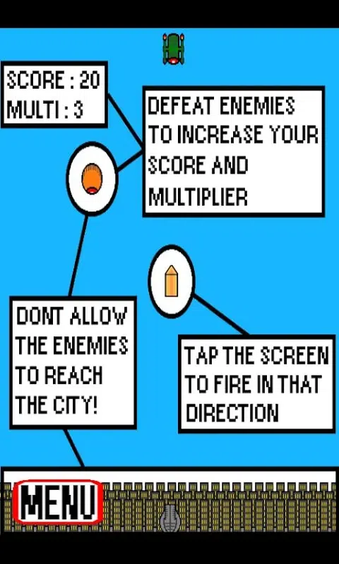 使用大炮向即将到来的攻击城市的外星飞船开火! 通过不遗漏敌人或允许任何敌人到达城市来增加乘数! 您的乘数越高,您的分数增加得越快
