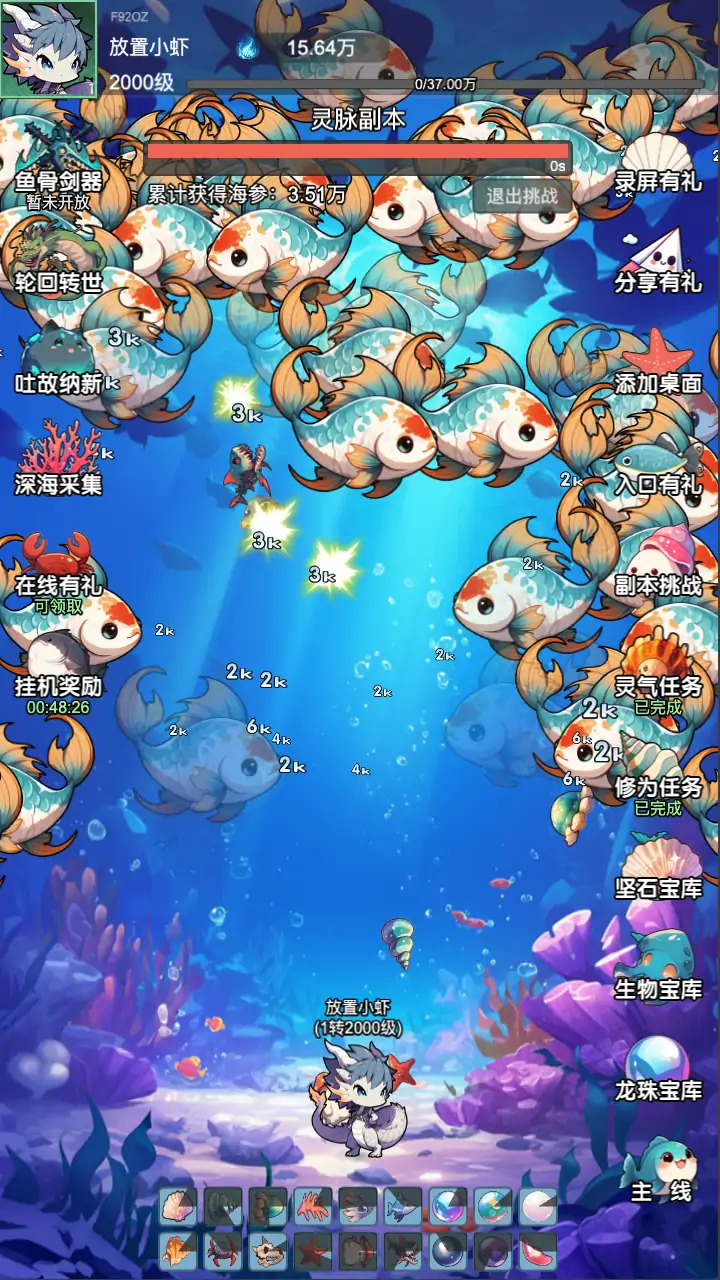 懒人挂机,放置修仙,天天收菜 深海之下,隐藏着一个不为人知的修仙世界。这里不是凡人所熟知的陆地修真界,而是一个充满神秘与未知的海底王国。在这个世界里,玩家将扮演一条拥有修仙潜能的小龙,从弱小逐渐成长为威震四海的神龙。