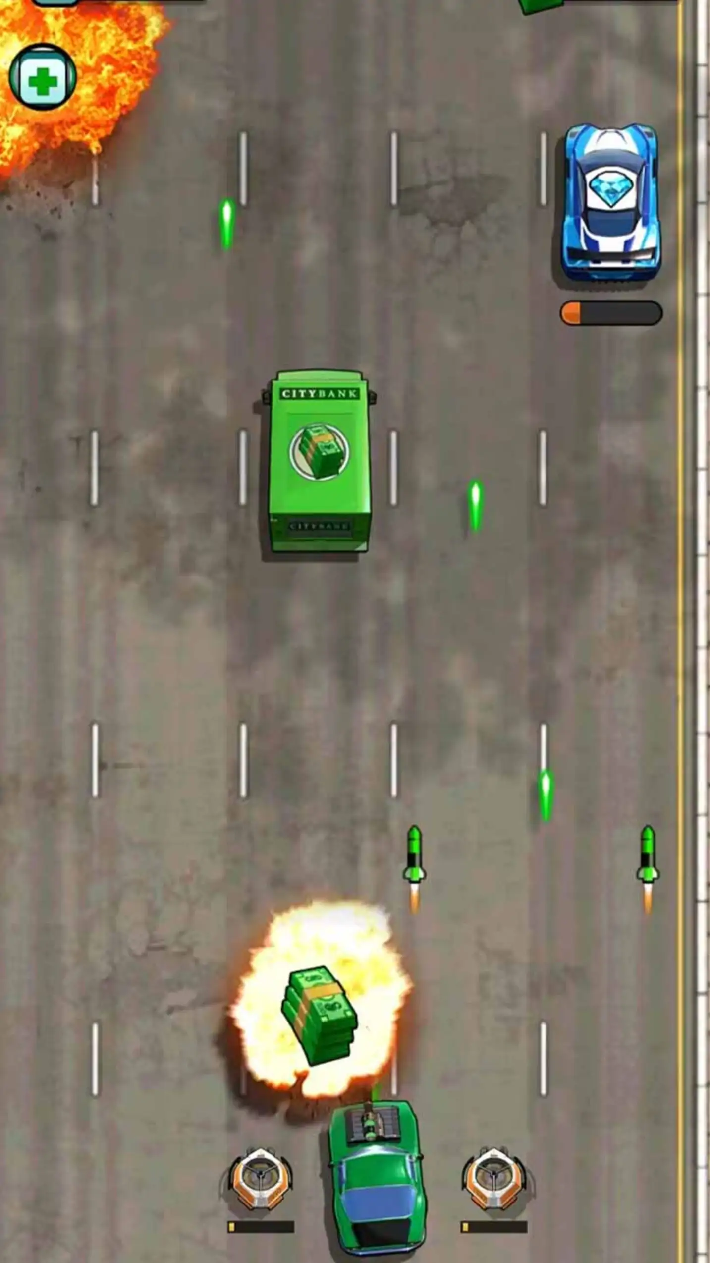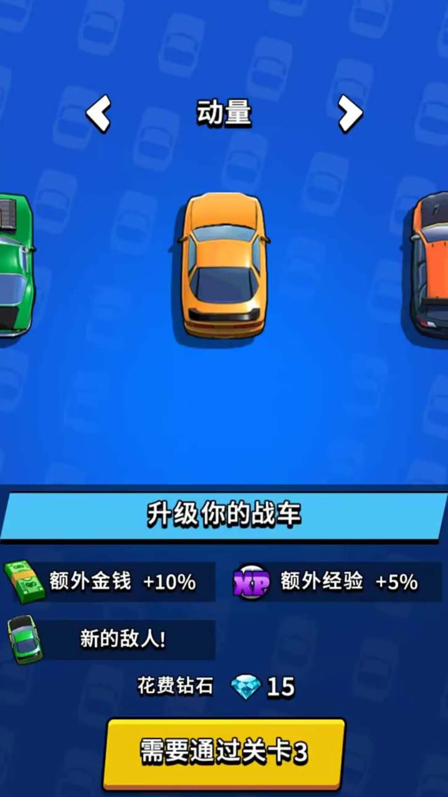 《极限赛车挑战》是一款休闲赛车射击类游戏,玩家在游戏中通过手指来操作赛车的方向,击毁路上的其他车辆来获取道具,直到到达终点为止。