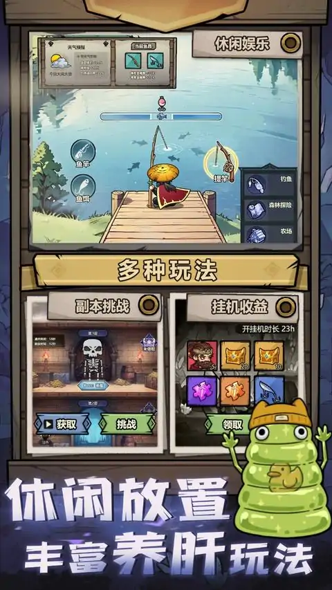 《指尖英雄》是一款点击类休闲玩法的奇幻冒险游戏,希望玩家可以在游戏中找回最初的手机游戏和游戏机游戏那种简单直白、重复体验的乐趣。游戏过程中,玩家所扮演的角色会在各种平行世界中穿越,战斗的场景会出现古代的战场,现代的乡村,未来的赛博都市,末世的废墟;也会在丛林,荒漠,洞穴等场景中穿梭。探险过程中,玩家所能收集到的英雄,也来自于不同次元,包含漫画题材中的机甲,小说题材中的火枪手,神话题材中的天使等。在这里,不仅可以体验到点击冒险,锻造装备,英雄养成,秘境探险,还可以轻松的种田,钓鱼,享受不一样的乐趣。 【疯狂点击,无畏闯关】省去复杂的游戏操作,通过简单的点击就可以操纵主角进行酣畅淋漓的攻击,消灭来袭的怪物。 【英雄羁绊,炫酷技能】每获得一个英雄,都可以帮助你进行作战,当凑齐一组连携英雄,还可以额外触发炫酷的连携技能,带来超强的提升 【冒险休闲,多元玩法】在游戏中,不仅拥有紧张刺激的冒险,修炼,还拥有装备锻造,农场种植,钓鱼和秘境探险等休闲玩法,为玩家带来丰富的游戏体验