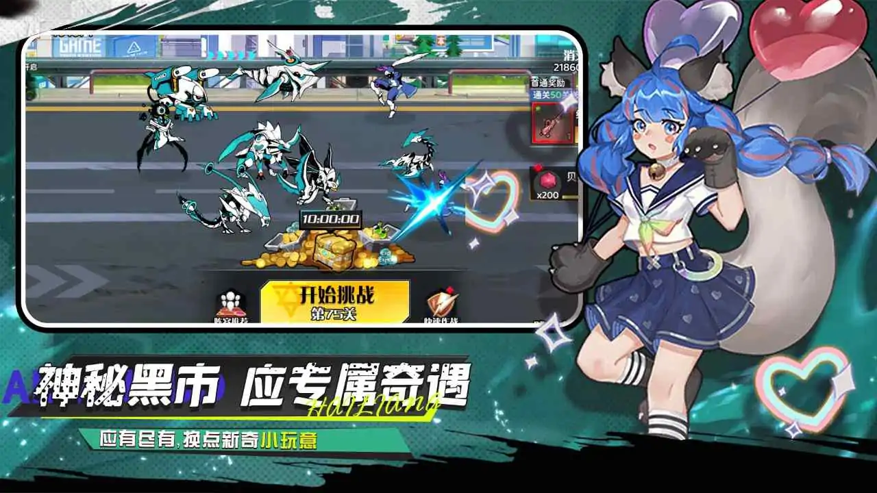 未来生物来袭,一场惊心动魄的冒险正在《武神传说》中悄然上演! 踏入危机四伏的中心城,这里是人类最后的希望堡垒,玩家将临危受命,扮演一名肩负重任的指挥使,你将在这个未来感十足的世界中,与各种奇异的未来生物正面交锋。它们或拥有强大的力量,或具备诡异的技能,每一次遭遇都是生死考验。 为了守护中心城,你需要在废墟与霓虹交织的世界里,招募性格各异、能力超群的英雄,精心组建专属阵容。从近战强攻的机械战士,到远程输出的能量操控者,再到擅长辅助的治愈系天才,根据不同英雄的特性巧妙搭配,才能在战斗中发挥出最大威力。 英雄升级进阶是提升实力的关键途径。收集珍稀材料,为你的英雄解锁更强大的形态与技能,见证他们从平凡走向传奇。别忘了在冒险途中合成强力装备,从能抵挡致命伤害的防护装甲,到可释放毁天灭地之力的武器,每一件装备都能成为扭转战局的关键。 技能搭配更是一门艺术,合理组合英雄技能,触发连锁反应,让敌人在眼花缭乱的攻势下毫无还手之力。而当战斗陷入僵局,超武将成为你的秘密武器,它蕴含的强大能量足以改变战场局势,带来胜利的曙光。 爬塔之旅充满挑战,每一层都有更强大的敌人和未知的陷阱等待着你。只有凭借卓越的策略和顽强的意志,才能不断攀升,解锁丰厚奖励与神秘剧情。多样副本同样精彩,无论是探索神秘遗迹,还是突袭敌人老巢,都能让你在冒险中收获珍稀道具和宝贵经验。 快来《武神传说》,在这个充满科幻色彩的世界中,成为拯救人类的传奇指挥使!
