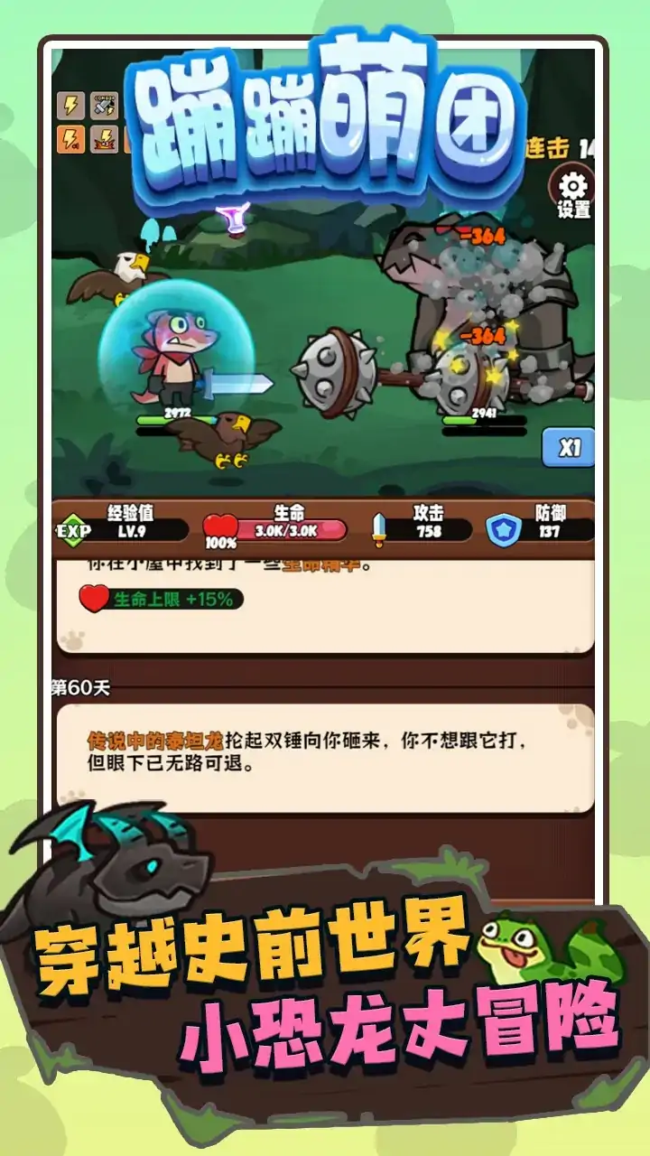 欢迎来到《蹦蹦萌团》这是一款融合“Q版恐龙主题”+“文本冒险肉鸽”的放置手游,你将扮演一只呆萌的小恐龙,在石器时代不断成长,挑战多样的BOSS、收集独特的宠物与装备,感受每天随机事件带来的惊喜与挑战! 核心亮点: 轻松休闲: 不争不抢,轻松游玩,随机惊喜,开箱得宝,躺平慢慢玩,主打就是个佛系慢慢玩! 冒险肉鸽: 冒险途中充满不确定性,随机事件、资源选择、技能升级,每一次决策都影响生存,考验智慧与勇气! 告别肝氪: 在Q版恐龙大冒险的世界里,享受轻松愉快的冒险之旅,丰富的资源福利,体验最纯粹的游戏乐趣! 快和小恐龙一起,开启治愈冒险!