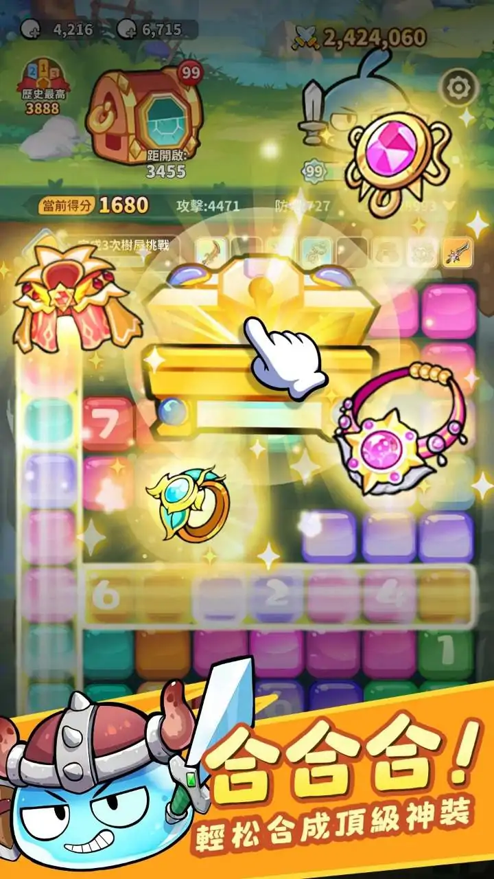 你,一只蓝色史莱姆,自从成形那一刻起,便踏上了四处游历的冒险之路。通过吞噬各种生物,逐渐掌握了变身与进化的能力,一步步成长为拥有力量与智慧的“史莱姆剑士”。 【顶级神装,轻松合出】 利用挖宝功能,发挥你的聪明才智,免费合成顶级宝箱开出超强装备,快来动动手指,简单获得神级装备和极品词条! 【超多精灵,共赴勇者路】 冒险路上怕孤独?害怕被怪物群殴?不用害怕,超多可爱又厉害的精灵陪伴你,在成为勇者的路上助你一臂之力。 【抵御魔物,夺回家园】 邪恶又强大的蜗牛怪占据了菇菇人的家园,身为正义的史莱姆勇者,你将与菇菇携手共进,一起面对未知的挑战,共同守护菇菇家园。 【轻松放置,菇菇村落】 帮助菇菇人夺回家园,重建村庄,可爱又勤劳的菇菇人会通过他们的努力,为你提供变强的必备物资,不用自己辛苦打宝,就能轻松变强!